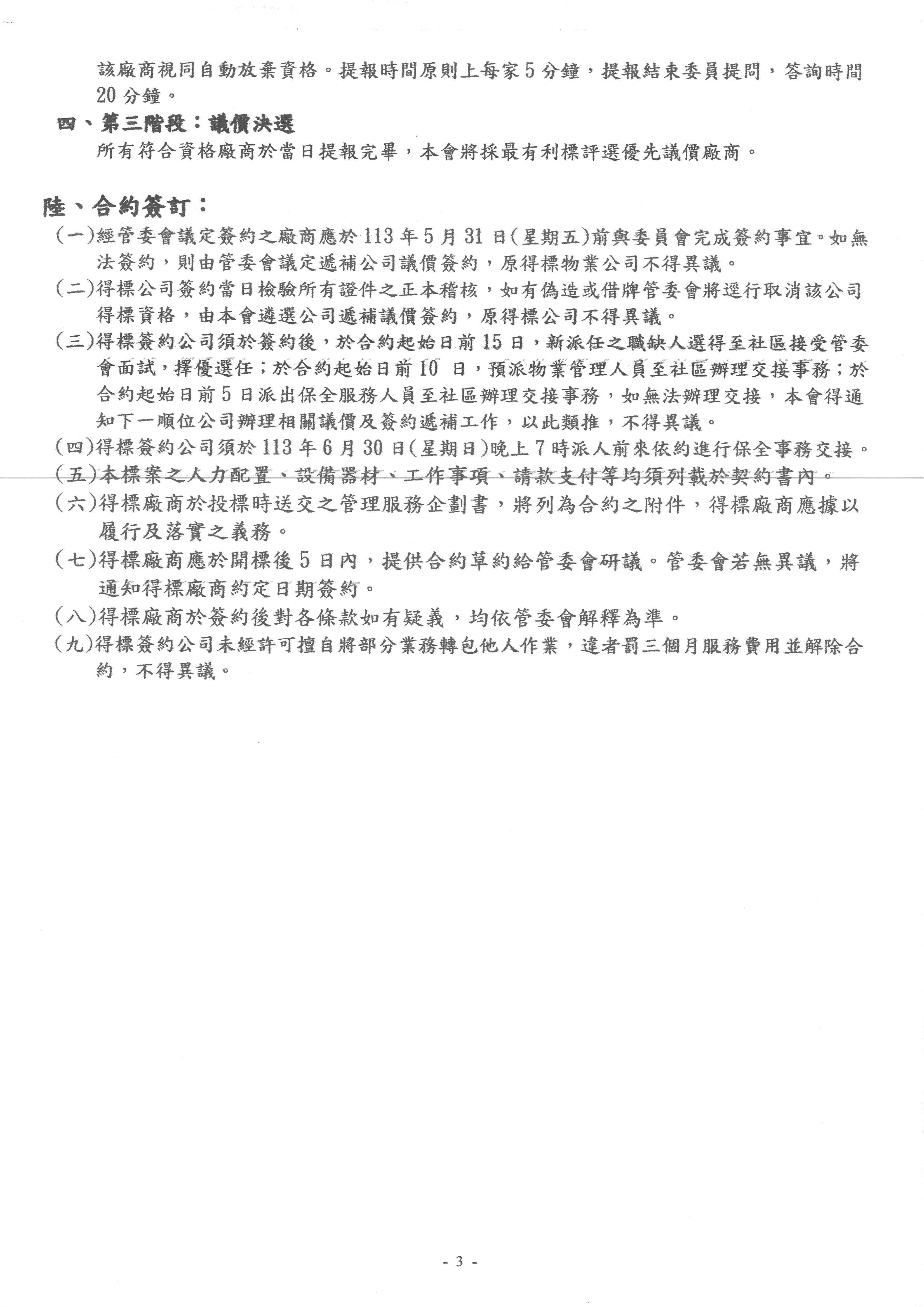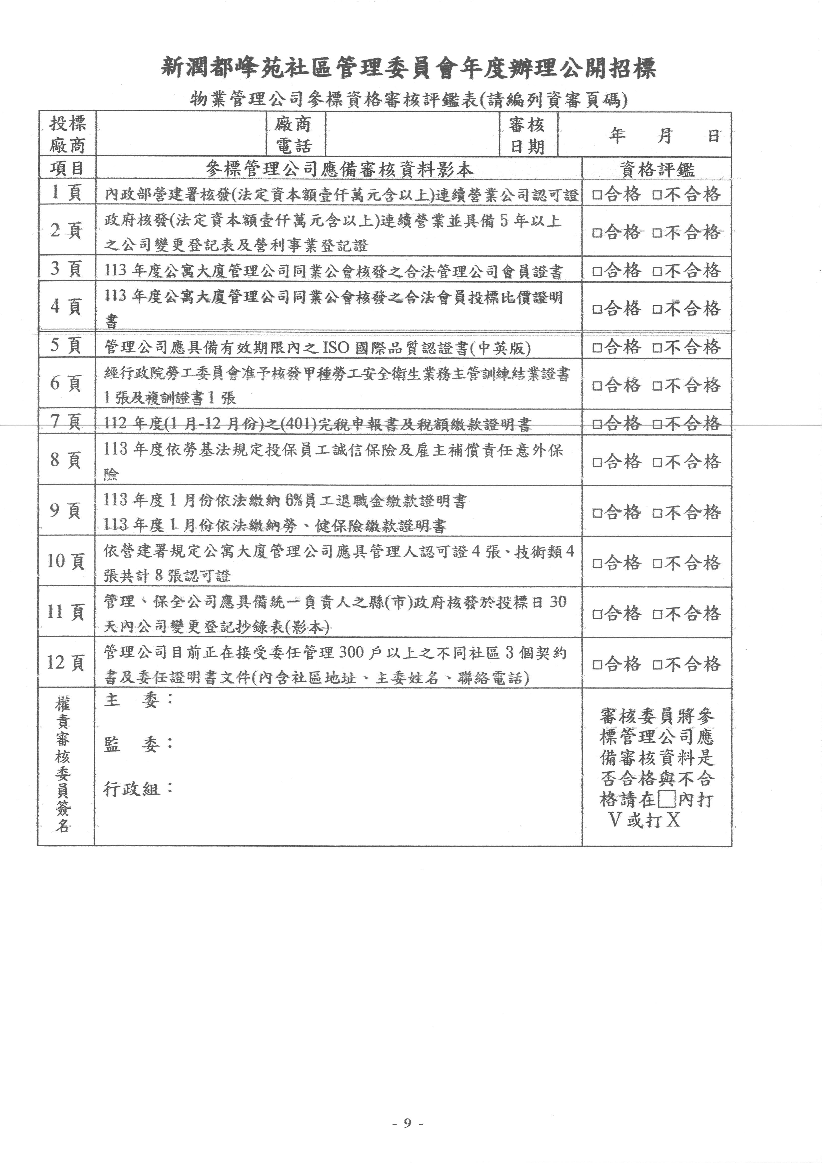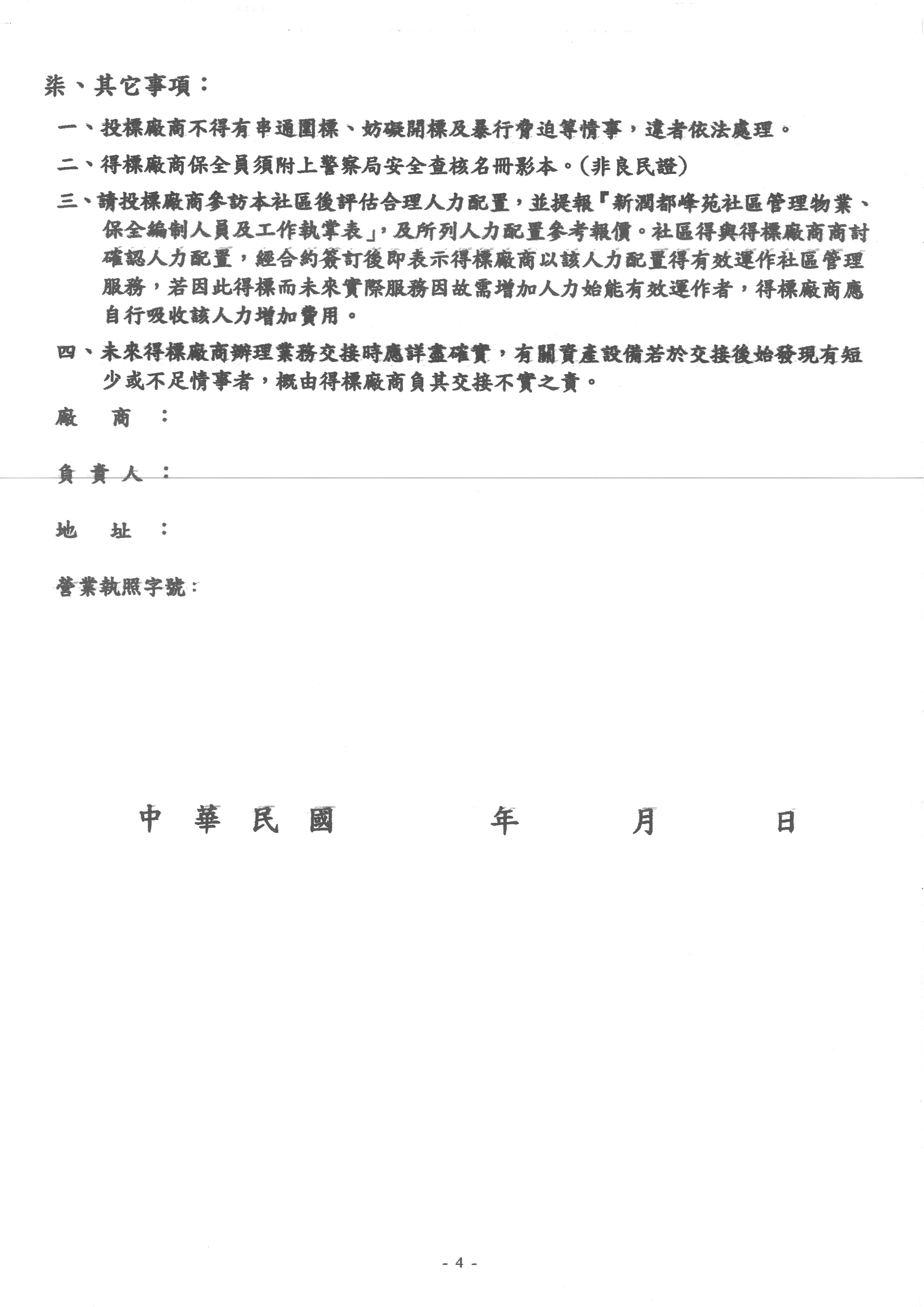 新莊區【新潤都峰苑社區】年度保全物業管理服務招標須知(113.03.29 1700截標)