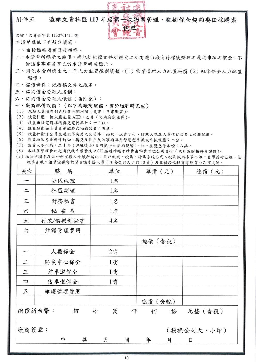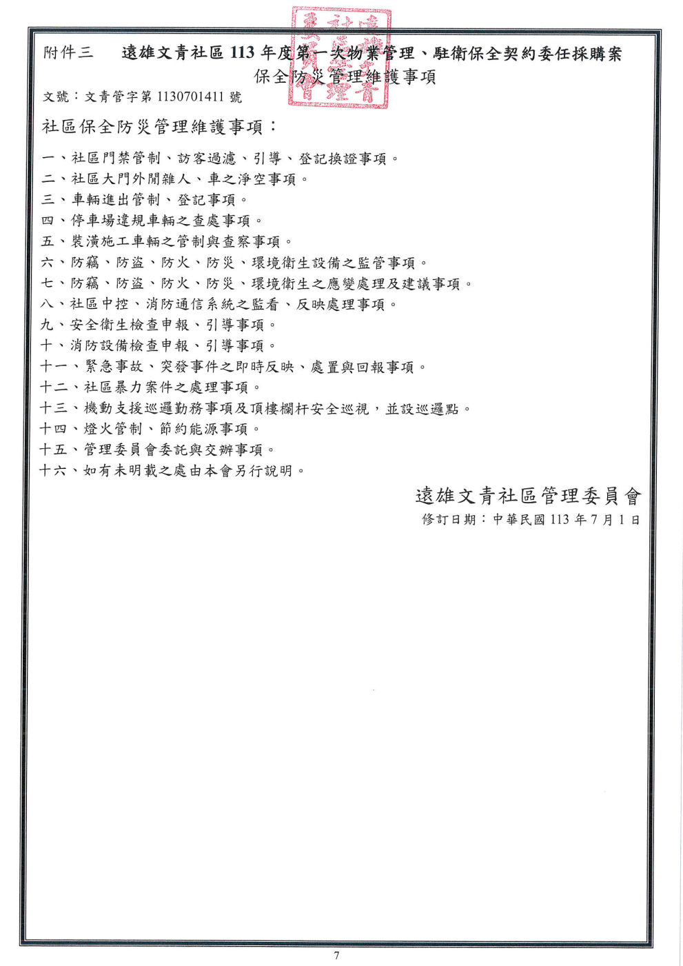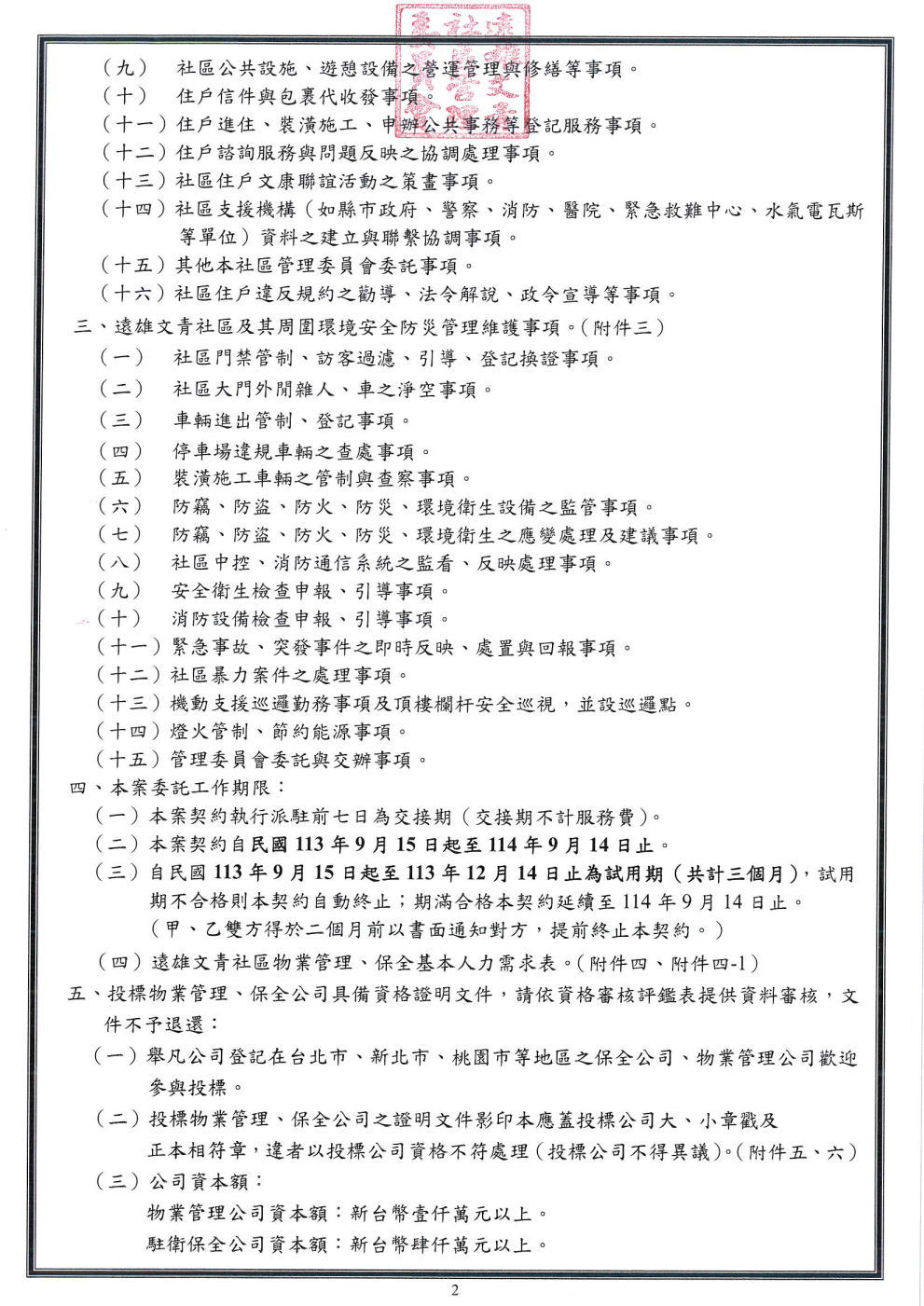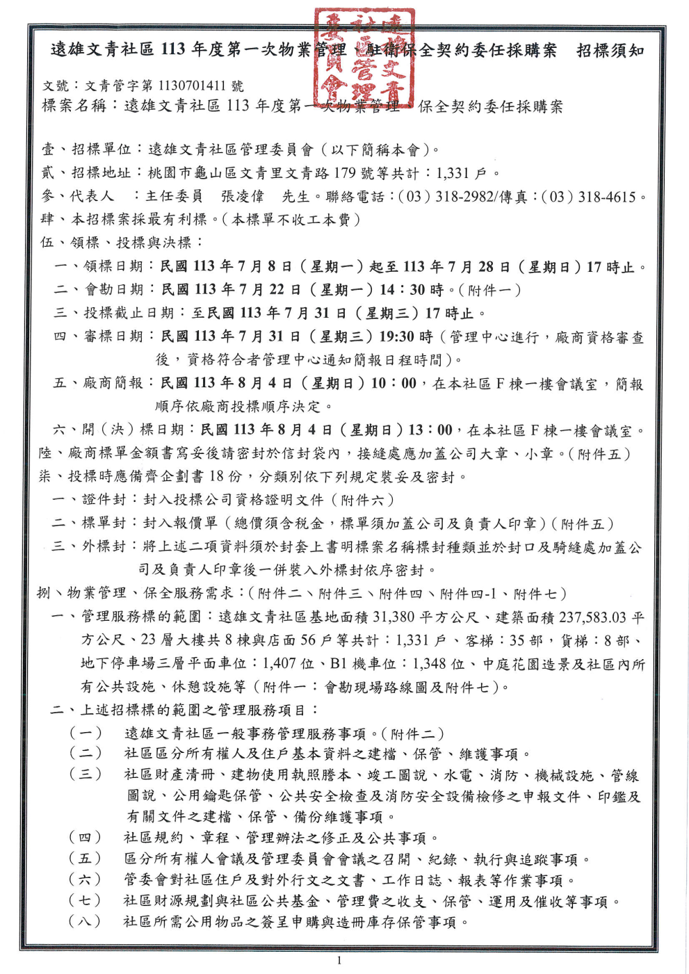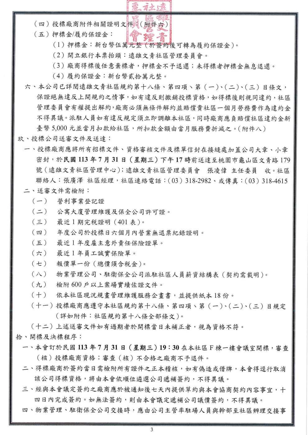 桃園龜山【遠雄文青113年物業保全招標公告】(張經理 03-3182982)(113.07.31 1700截標)